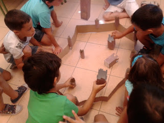 La primera actividad que hemos hecho es buscar por todo el patio las pistas para conseguir todos los ingredientes que tiene la paella valenciana.
